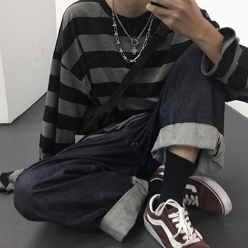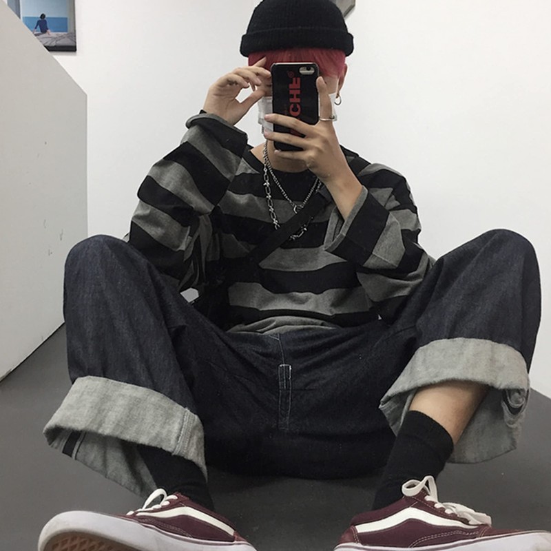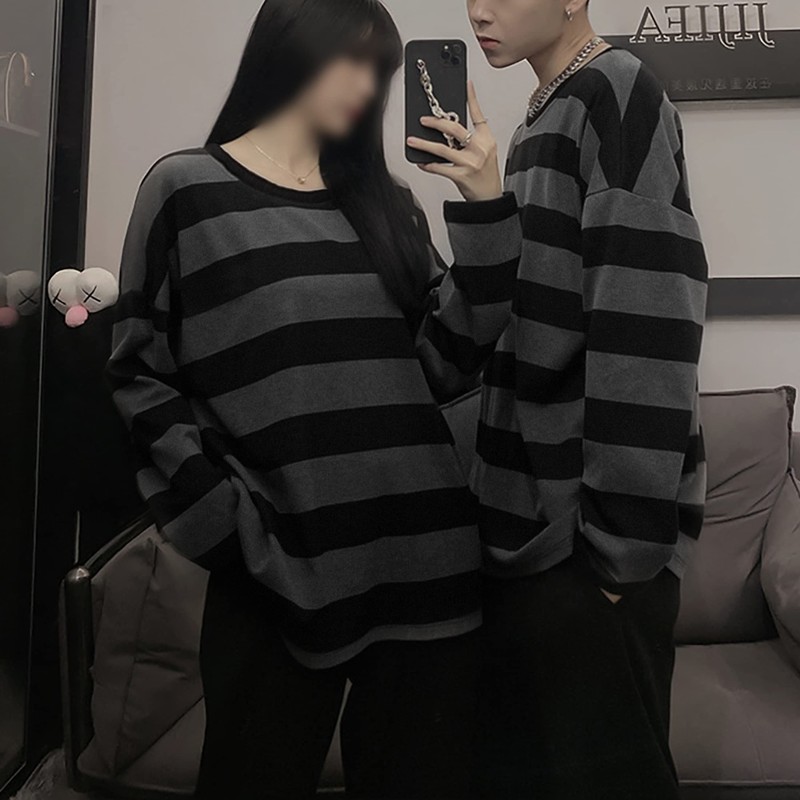 • Casual loose fit striped shirt, unisex striped tops, punk cool trendy women men tops