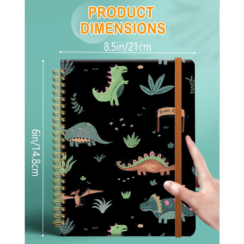 ZHIZHEND Ruled Spiral Writing Notebook,A5 Hardcover Lined College Journal for Women,Strong Twin-Wire Binding with Premium Paper,8.4" X 6",Perfect for School,Office,Home(Cute Dinosaurs)
