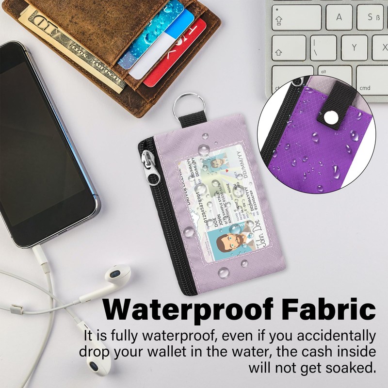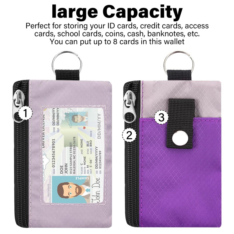 - PRODUCT INCLUDE:2*Zippered Pockets+1*ID Window+1*External Pocket+1*Key Ring+1*Lanyard.You can use the 14.6 inch lanyard to hang the wallet around your neck to avoid losing it and use the key ring to hold your keys.The Transparent ID window can help you identify information faster