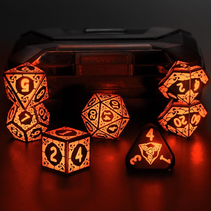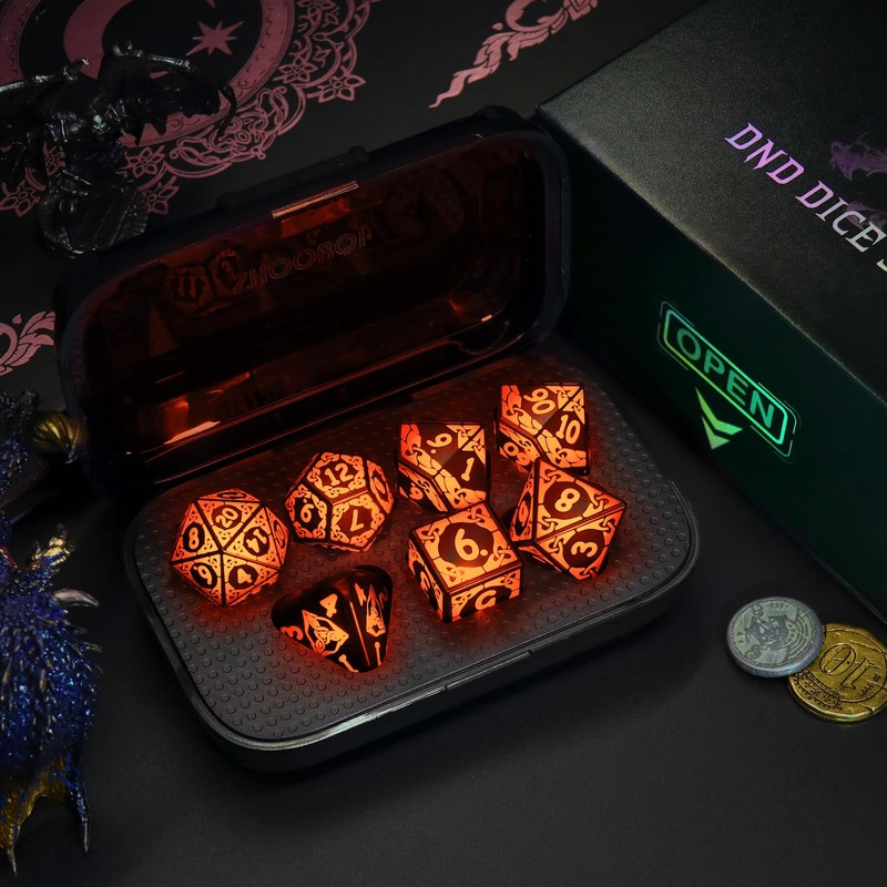 • Magic Light Up Dice: Watch every roll ignite brilliant Orange lights (15 sec/roll)! These glow in the dark dice cut through dim taverns or late-night sessions, making dragon battles unforgettable. Perfect for new players and veterans alike.