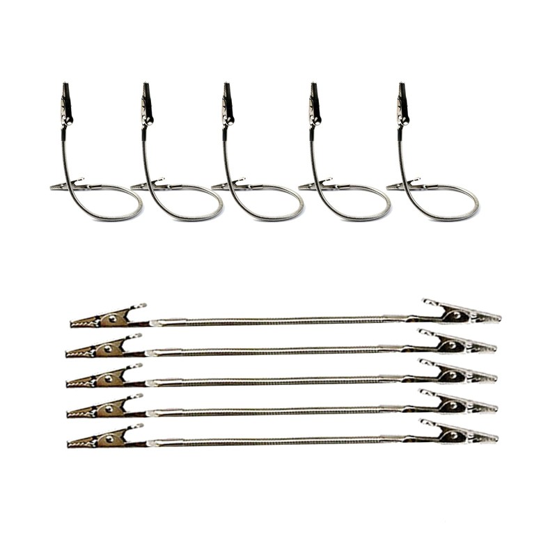 - Unique Design:The two alligator clips are connected by a metal spring hose,which can be bent in various shapes at will.The clip is strong and firm,not easy to loosen,the clamping mouth is neat,it is not easy to be deformed after long-term use,and the appearance is smooth and shiny.