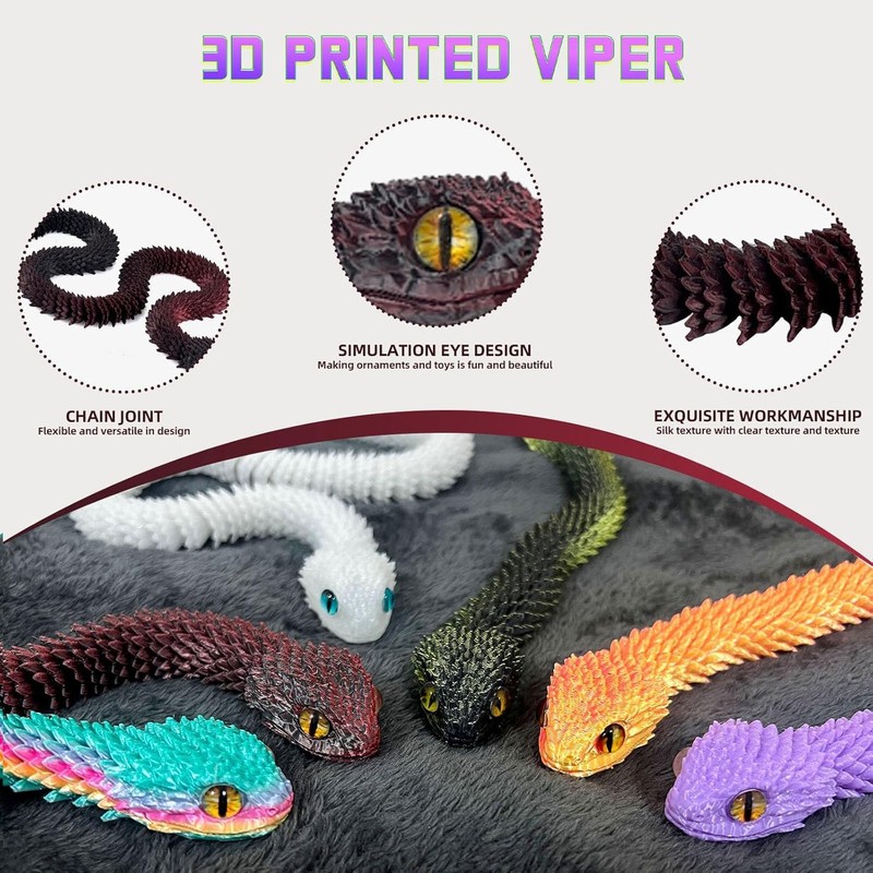ZHRUOYAO 3D Printed Animals-Snake Viper,3D Printed Snake Toys 3D Printed Articulated Snake 3D Printed Animals Animal Model Ornaments Creative Funny Toy Festival Gift for Frends
