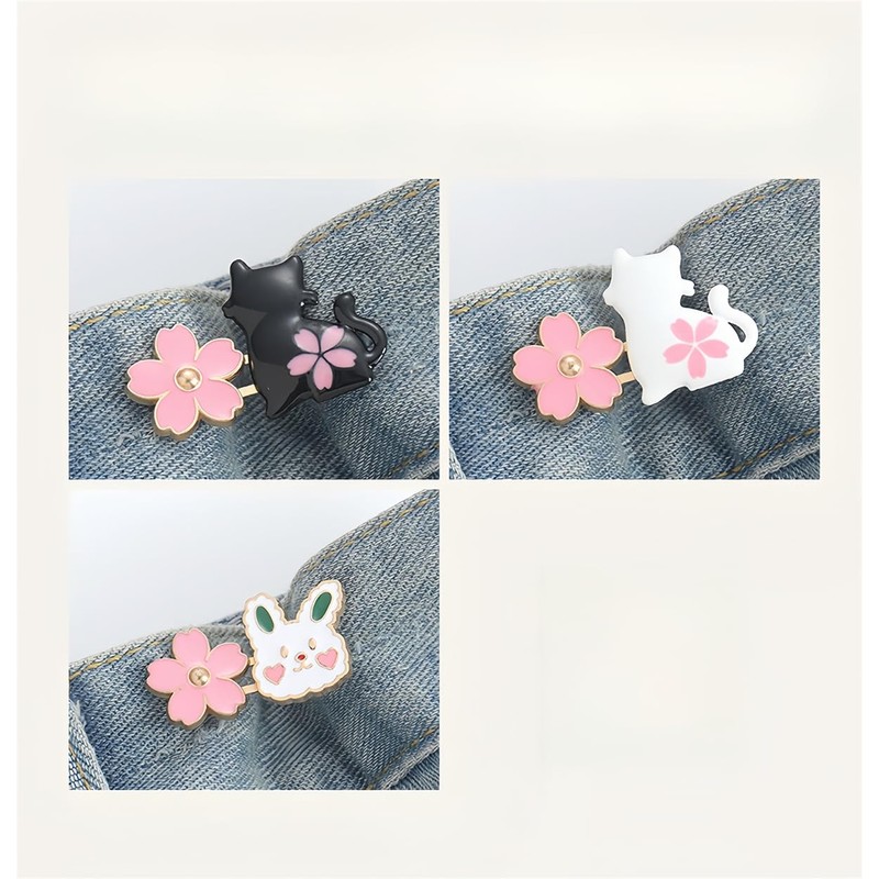 ZHU IN SY Jeans Button 3 Sets Pant Waist Tightener, Adjustable Waist Buckle Sets No Sew and No Tools Detachable Decorative Buckles, Women Skirt Loose Jeans