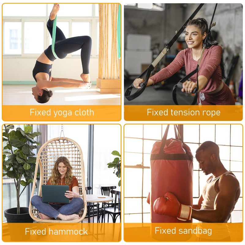 Suitable for concrete, brick walls, columns, decks and other surfaces, suitable for hammocks, hanging chairs, chandeliers, slings, swings, sandbags, yoga straps, wire ropes, fitness equipment, resistance bands.