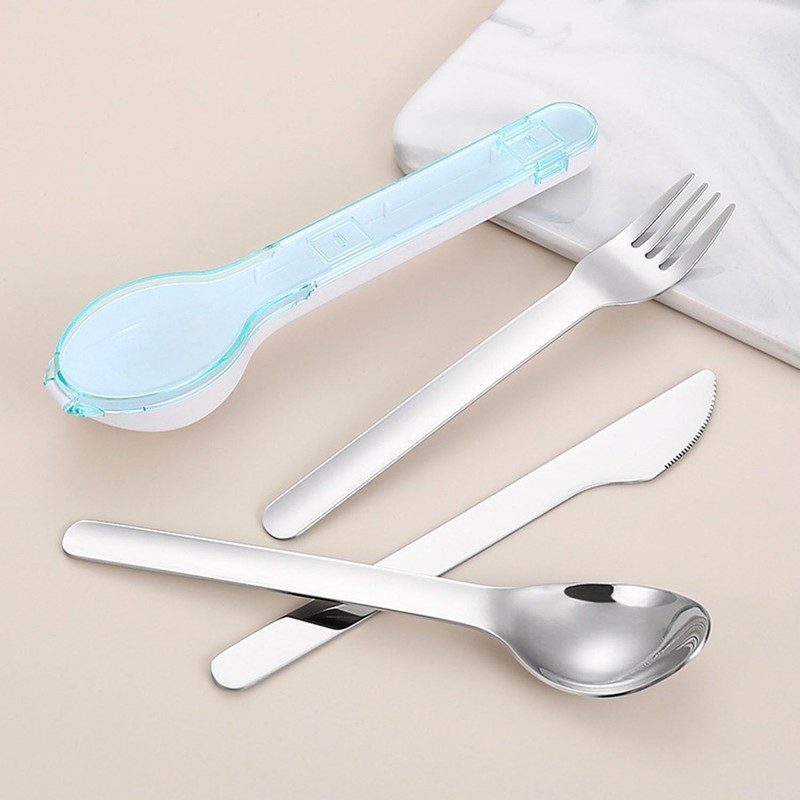 ZHUNIPINGAN Travel Cutlery Set with Case Portable Silverware Utensils Set,ABS cutlery box, spoon and forkReusable Flatware Set Cutlery Set for Camping Picnic Hiking Office (green), 1, BXCJ01