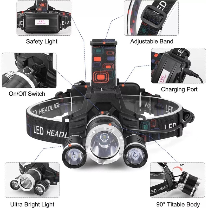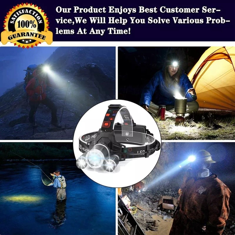Faro delantero superbrillante mejorado: el faro recargable utiliza 3 bombillas LED CREE, hasta 6000 lúmenes, más brillante, más brillante, más tiempo. La oscuridad se puede ver desde 350 metros de distancia. Puede iluminar su entorno con la confiable luz LED manos libres. Le da la libertad de trabajar, leer, andar en bicicleta, pescar, reparar, cazar y explorar en cualquier momento y en cualquier lugar.