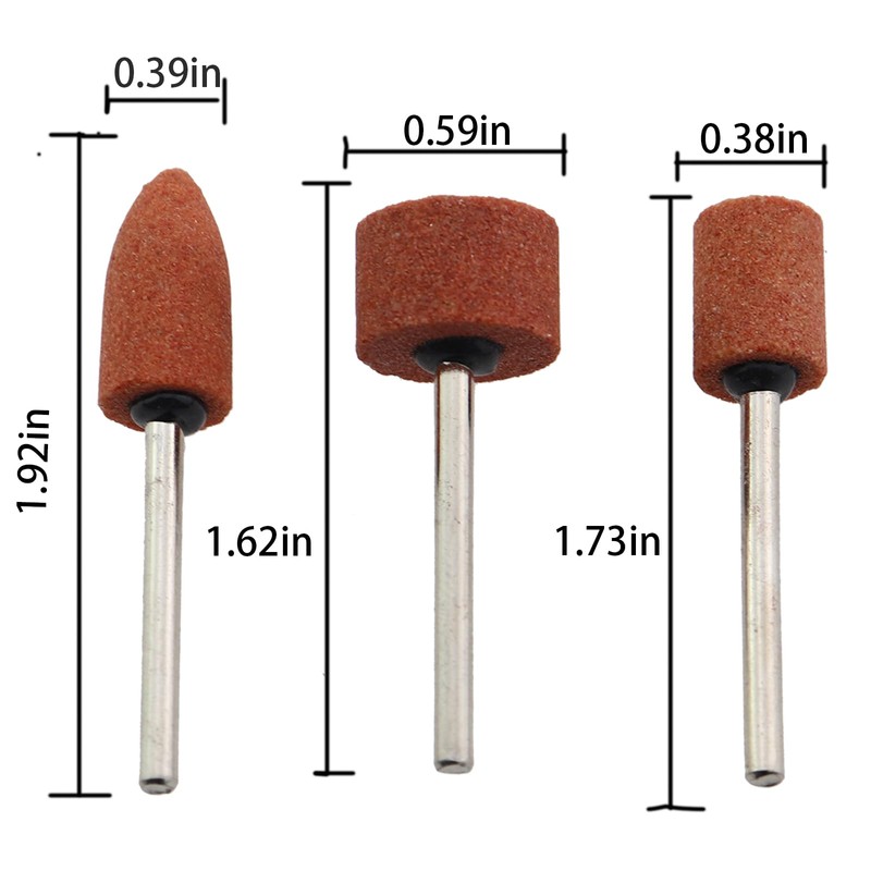 • Packaging:Various shapes and sizes to suit different needs. This bundle of stone sanding bits comes in three different shapes and sizes, all with a 1/8 inch shank for standard rotary tools.
