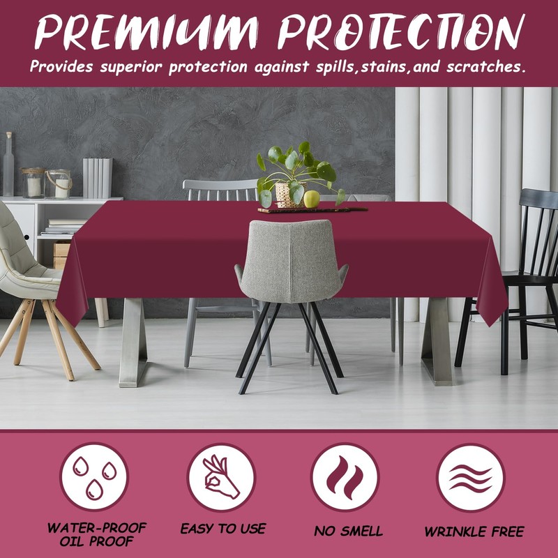 ZHZJCKSHB 54IN X 160FT Plastic Table Cover Roll with Cutter Box, Cut to Size Plastic Table Cloths for Parties, Picnic, Wedding, Birthday, Disposable Tablecloth Roll for All Shape Tables (Burgundy)