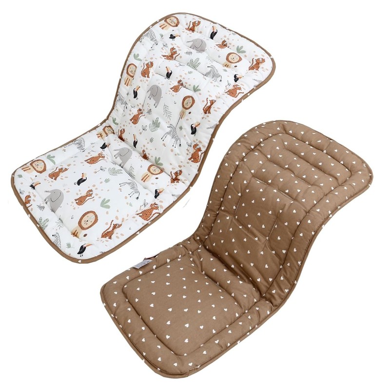 - The baby stroller seat liner can be used on both sides, with a variety of cute prints on the front and a solid color design on the back.