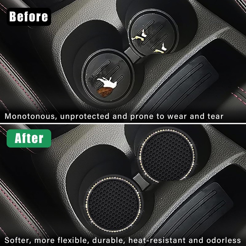 -The shiny crystal rhinestones can decorate your car water cup holder and make it look more luxurious.