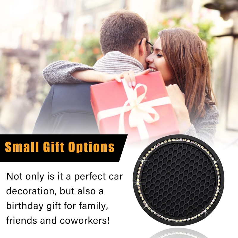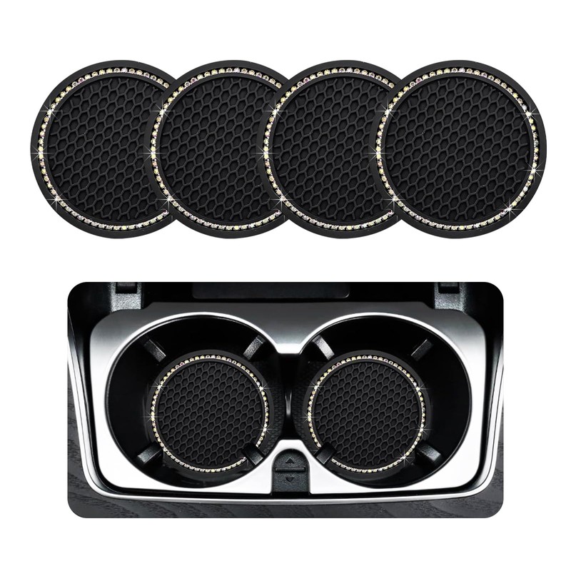 - 【Package Content】: There are 4 pieces of diamond encrusted car coasters. The round diameter is 2.75 inches and the thickness is 0.23 inches. The crystal clear crystal rhinestone match complement each other, will make your car interior look more luxurious and add personal charm.