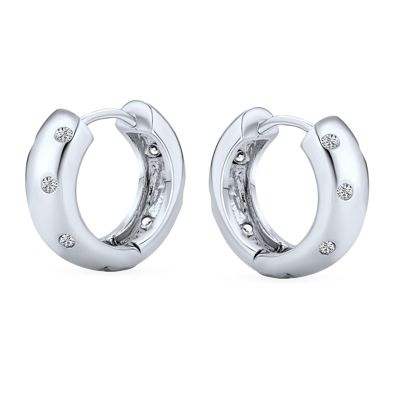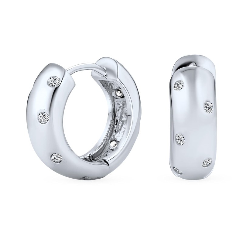 - Sleek and chic, you will love our 0.6in, sterling silver huggie hoop earrings to enhance any ensemble. Featuring a CZ etoile pattern, these sparkling earrings are a great gift.