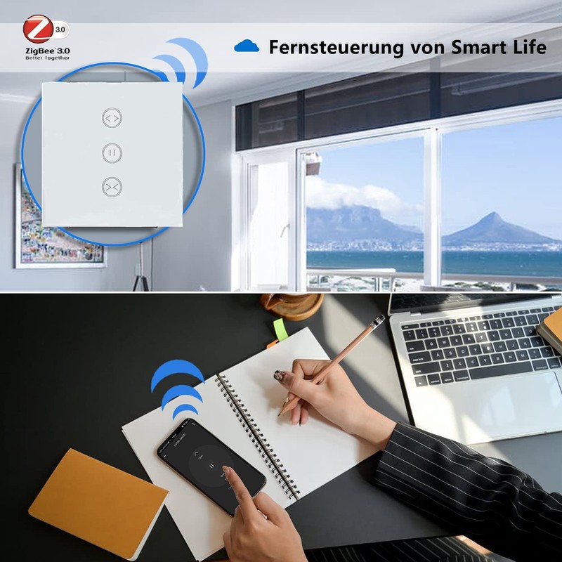 • ZigBee roller shutter switch: The Zigbee roller shutter switch is made of high-quality tempered glass and PC + ABS material, waterproof and shatterproof, and looks beautiful. You can touch the control panel with wet hands even after showering. The neutral cable is required. Intelligent control of blinds or shutters is easier with separate control modes.