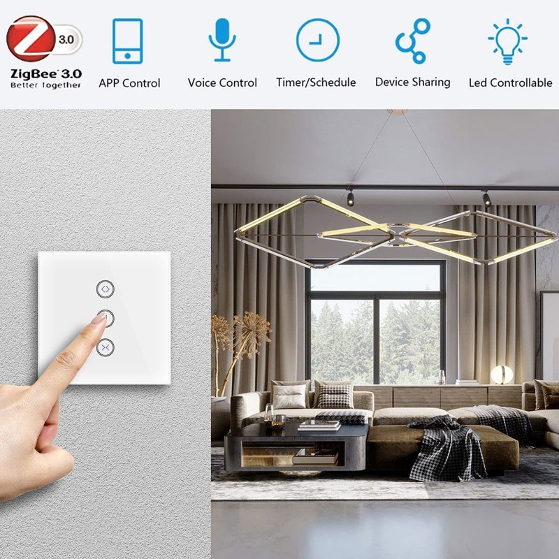 - ZigBee roller shutter switch: The Zigbee roller shutter switch is made of high-quality tempered glass and PC + ABS material, waterproof and shatterproof, and looks beautiful. You can touch the control panel with wet hands even after showering. The neutral cable is required. Intelligent control of blinds or shutters is easier with separate control modes.