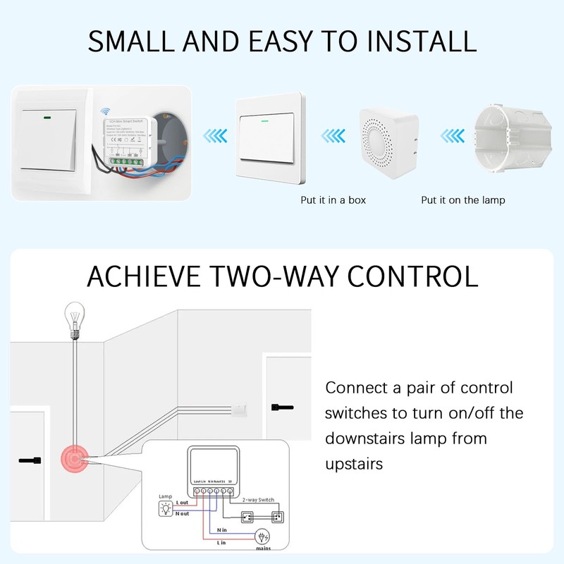 - 💡Mini design: Smart Homekit switch is designed to fit into a normal switch box and can be easily hidden in conventional switches and wall switches without having to change your home decor. No hub required, 2.4GHz network required.