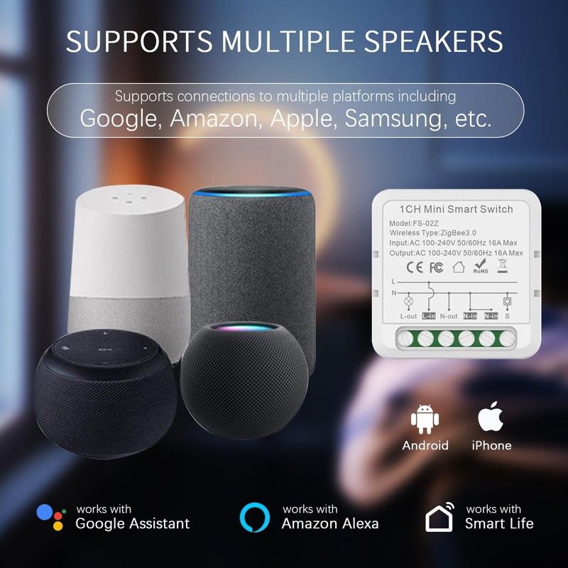 - Works with Apple HomeKit: The mini WiFi switch can be controlled via Siri or any other device with Apple HomeKit (iOS 13 or higher). WLAN smart switch can also be used with Alexa and Google Assistant via the "Cozylife" app to make your life more comfortable and convenient.