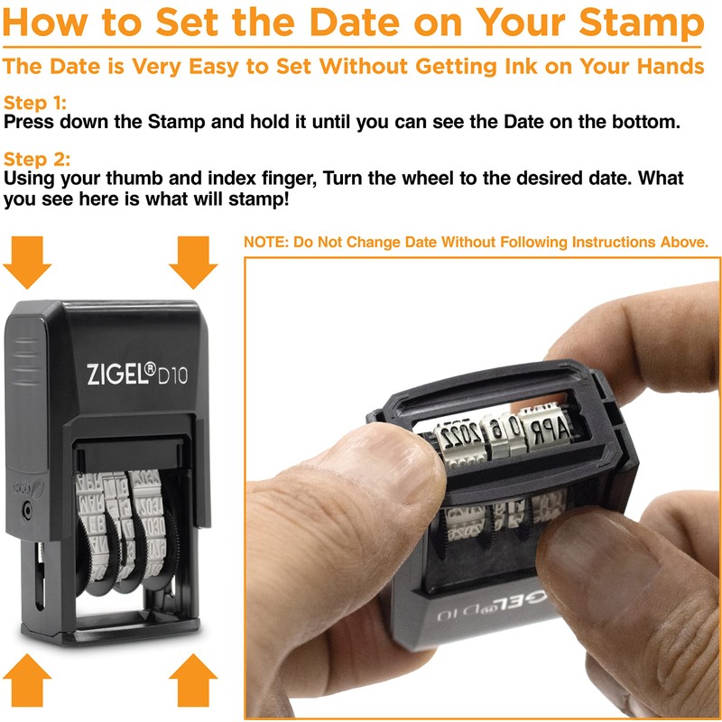 ZIGEL D10 Office Date Stamp - Self Inking Date Stamp - Black