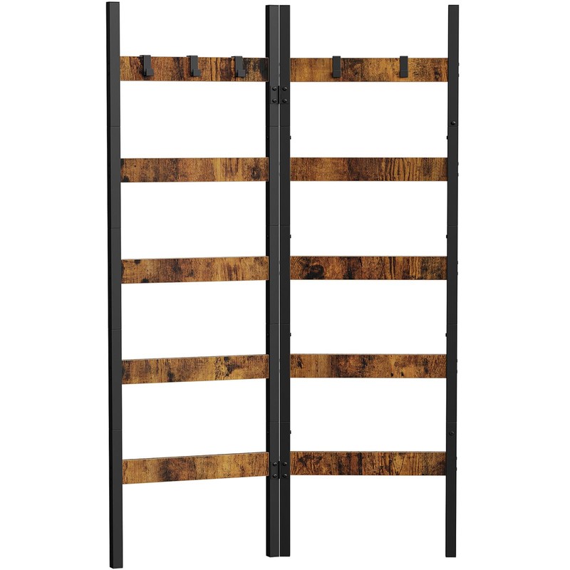 This foldable blanket ladder expands your storage space and adapts to various placements. Designed with a sturdy metal frame and engineered wood, it’s perfect for hanging blankets, towels, and bath towels—combining durability with elegant style that also serves as a decorative accent. Specifications: Color: Rustic Brown Material: Metal, Engineered wood Product Size: 16.9''/34.2''W x 63.7''H Package Contents: 1 x Foldable Blanket Ladder 5 x Hooks 1 x Accessory Kit 1 x Instructions