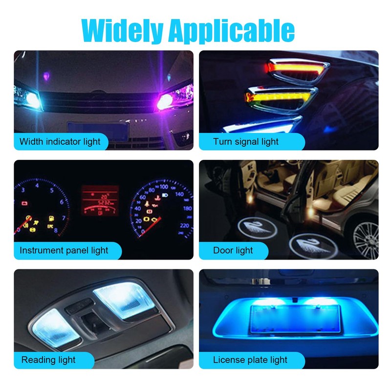 - WIDE APPLICATIONS: these bulbs 194 LED automotive interior bulbs are very versatile and can be used for license plate lights, dome lights, map lights, front/rear side marker lights, trunk cargo lights, turn signals, courtesy pedal lights, parking lights, glove compartment lights, reading lights, door lights, interior lights, interior taillight bulbs, and can even be used for vanity mirror lights and more.