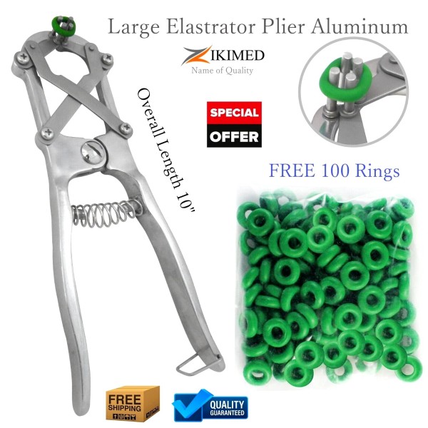 Zikimed Elastrator Castration Pliers with 100 Rubber Bands! Aluminum Build for Durabilit