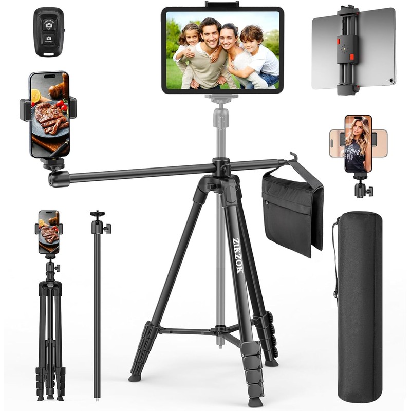 • Lightweight and Durable: ZIKZOK's updated overhead phone tripod combines the function of phone stand with a selfie stick. Adjustable Height and Perfect Angle: 18 inches to 70 inches with 6 height adjustments. Features aluminum alloy tripod (weighted: 1.8lbs), this phone stand for video recording will hold your heavy cell phone firmly even in a windy day. 17in Horizontal Long Extendable Boom. Its a must stand for overhead video recording, filming, baking, scanning, tiktok videos, FaceTime, Instagram, outdoor time-lapse shootings taking selfies, Youtube, vlogging, live streaming, Family Gathering, long exposure photography, Crafting, Drawing, Nail Art, Tattoo etc