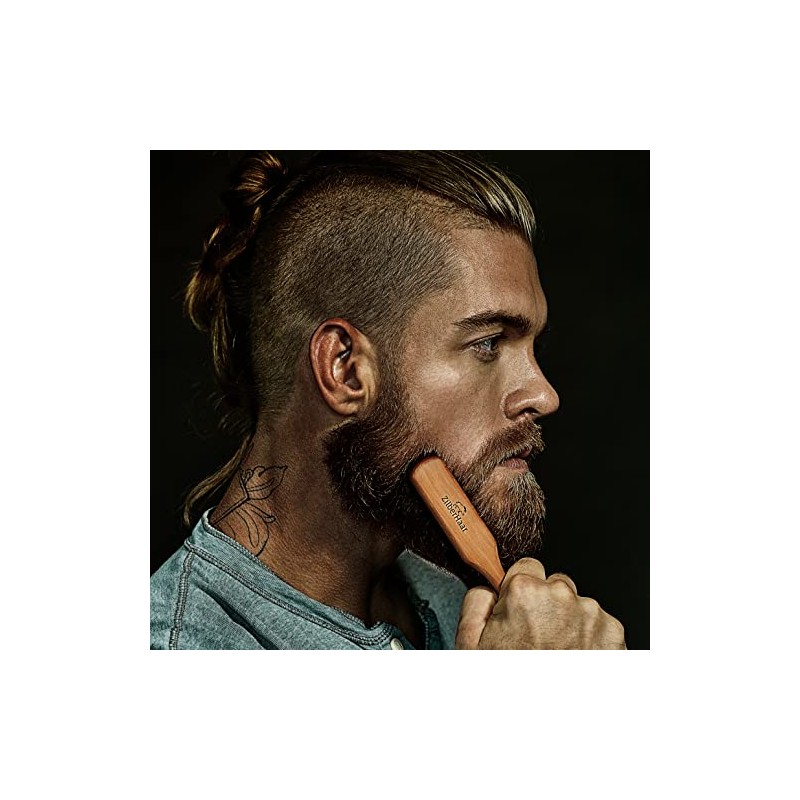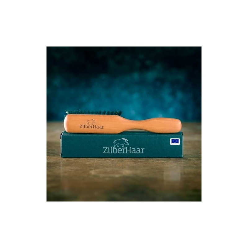 ZilberHaar - Cepillo para Barba Normal - 100 Cerdas autnticas de Jabal y Madera de Peral - Cuidado Facial Masculino Compatible con Todos los Blsamos
