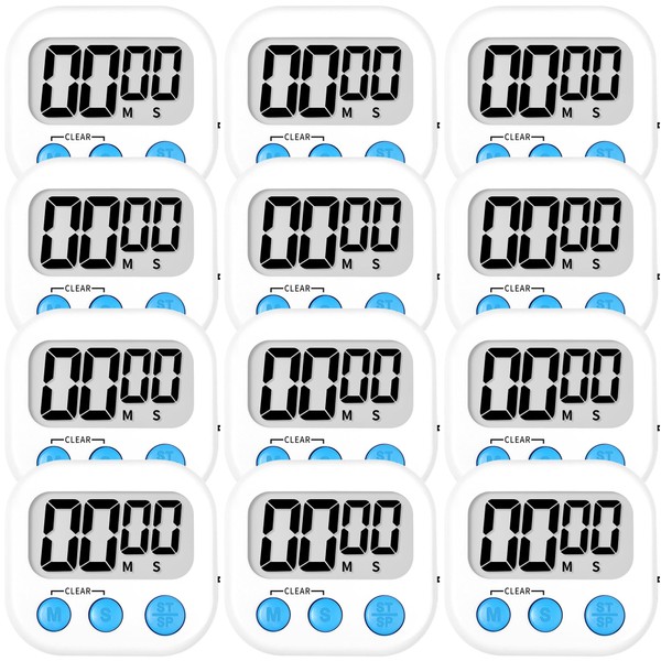 ZILLEEN Kitchen Timer Digital with Magnetic Back for Kids Classroom, White 12 Pack