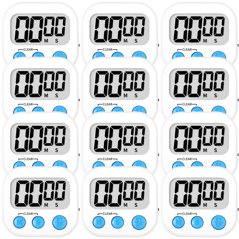 - 12 White Kitchen Timer: Measures 2.124 * 2.28 ", large screen, large numbers, easy to read.