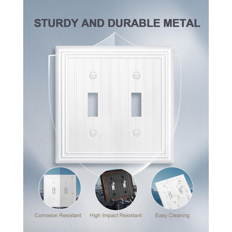 - 【Pure White Beadboard Design】ZILLSEA double toggle wall plate adopts classic beadboard design, flowing lines, enhancing a hint of texture to any room. The pure white finish coordinates with home's decor for a bright and clean appearance