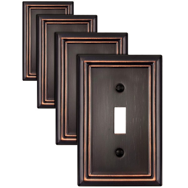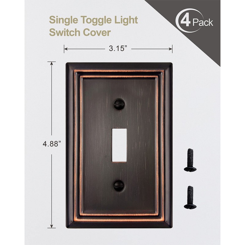 ZILLSEA 4-Pack Single Toggle Switch Wall Plate, Decorative Aged Bronze Light Switch Cover, Metal Switch Plate Cover, 3.15''*4.88'', Midsize