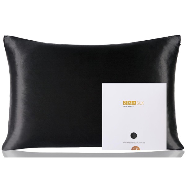ZIMASILK 100% Mulberry Silk Pillowcase for Hair and Skin, with Hidden Zipper, Both Sides 19 Momme Pure Silk, 1pc(King 20''x36'',Black)
