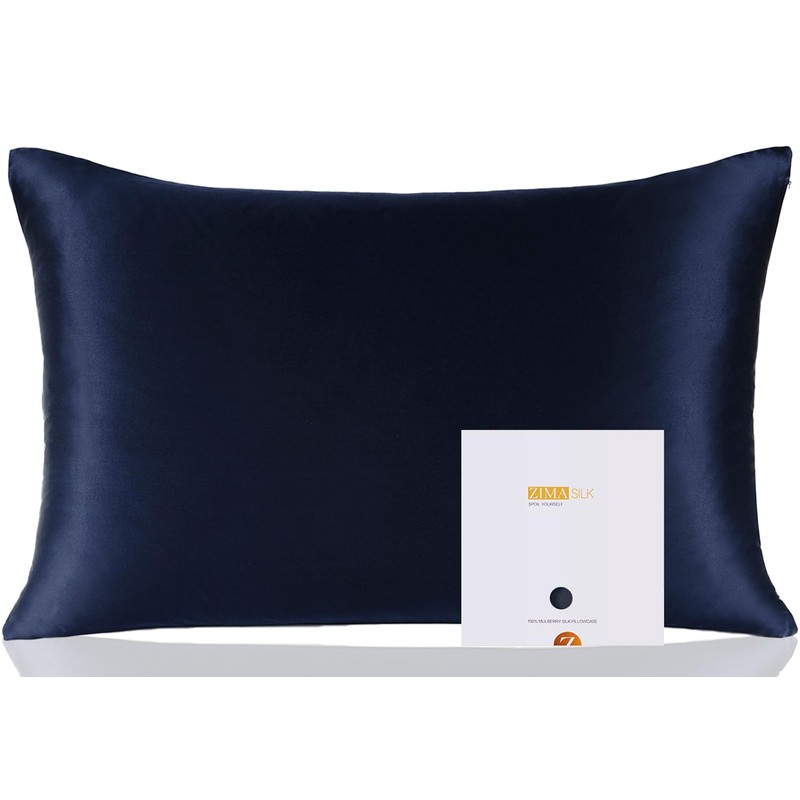 ZIMASILK 100% Mulberry Silk Pillowcase for Hair and Skin, with Hidden Zipper, Both Sides 19 Momme Pure Silk, 1pc(Queen 20''x30'',Navy Blue)