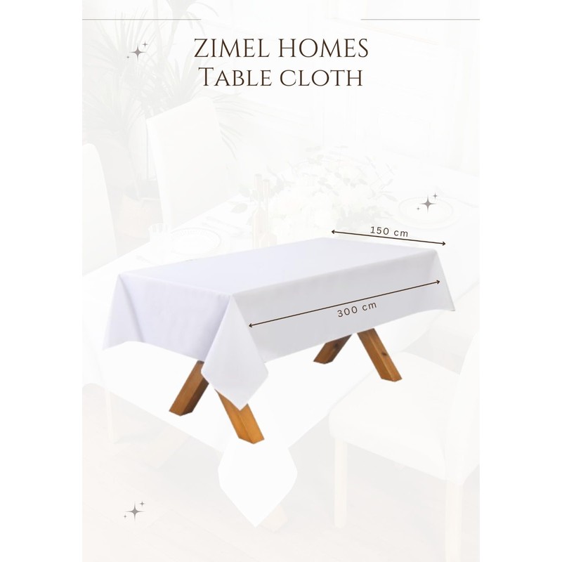 ZIMEL HOMES Extra Large Rectangular Fabric Tablecloth 150x300cm and 140x200cm 4 Colours (White, 150 x 300 cm)
