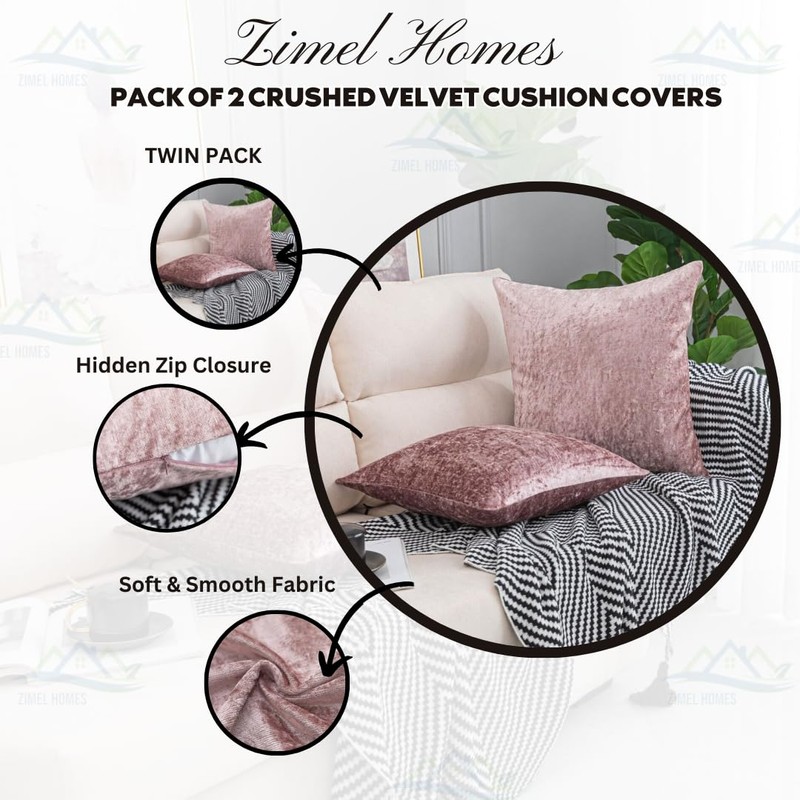 - ☑️ TWIN PACK: 2 x Cushion Covers only, No Cushion Pad included. Zimel homes soft pillowcases are made of smooth Crushed Velvet fabric, which is unfading and gives your skin the safest and smoothest vibes.