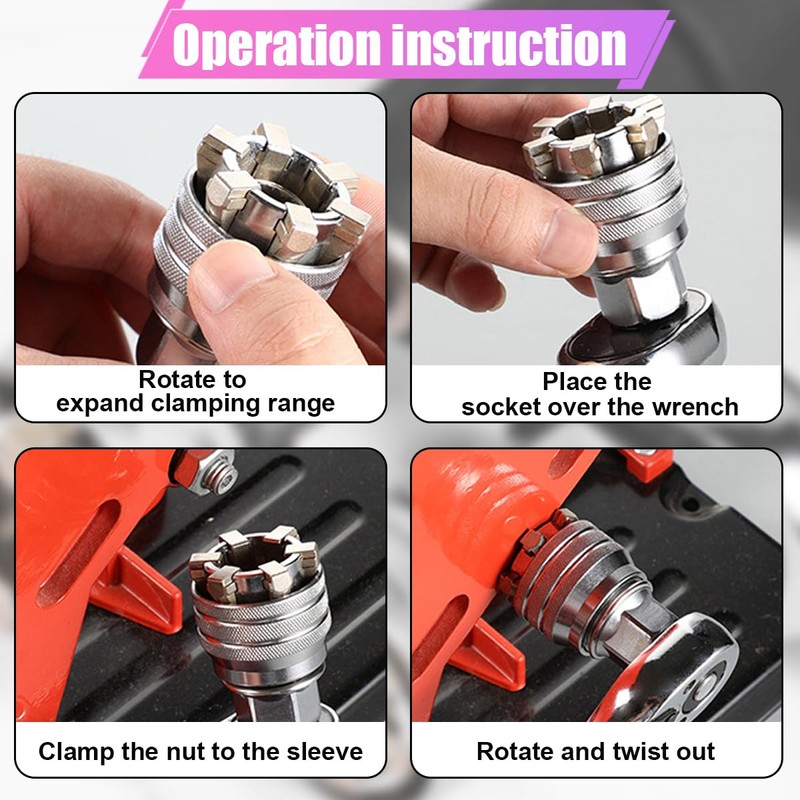 - 【Size Specifications】: The universal socket wrench measures 2.04 × 0.82 inches, capable of easily gripping and removing damaged, rounded-off, and rusted nuts and bolts ranging from 3/8 to 3/4 inches. It can perform excellently in the automotive industry, home maintenance, manufacturing industry, construction industry, and many other industries, meeting the needs of different industries and scenarios.
