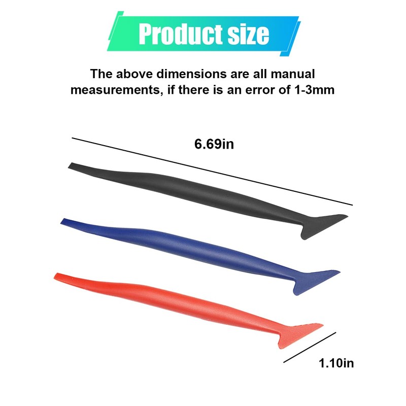 - 【Package Includes】:You will receive a 3-in-1 scraper set, which includes 3 different colors of micro scrapers. Complete accessories can easily meet your car film needs.