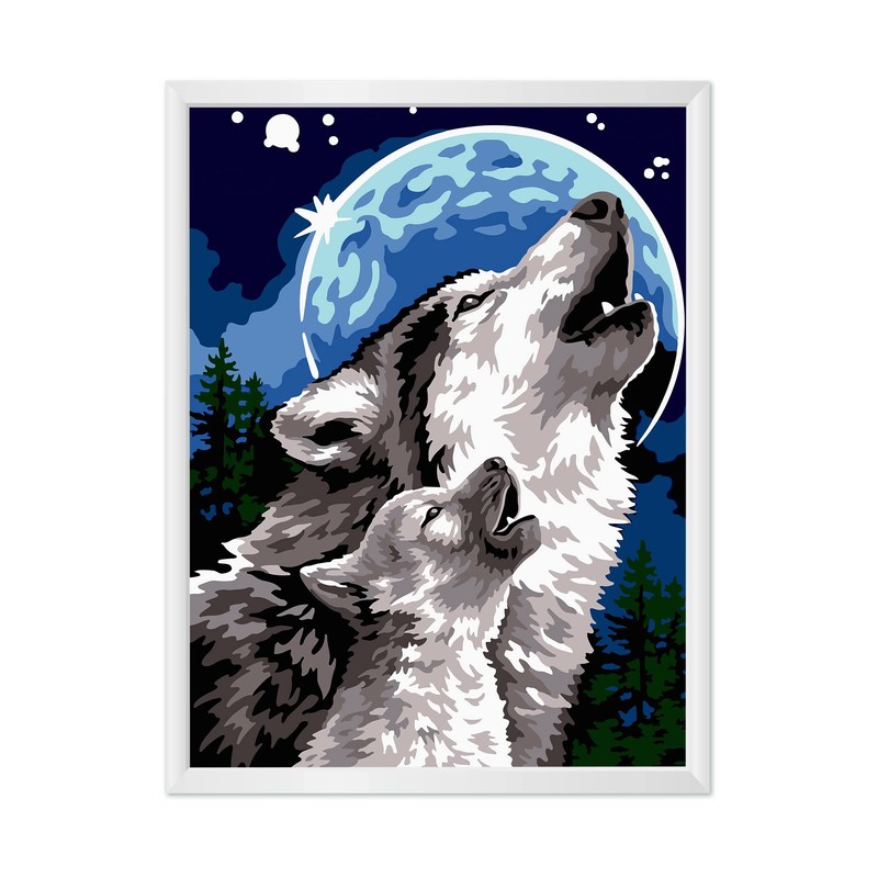 Zimrobin Painting by Numbers from 7 8 9 Years Girls and Boys, Painting by Numbers for Children with Frame, 3 Brushes and Acrylic Paints, 18 x 24 cm (The Wolf and the Moon)