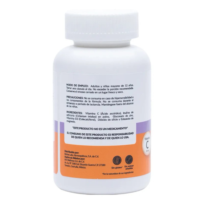 Zinc 200 + Vitaminas C Y D3 60 Cáps. Suplemento Ntx Sabor Sin Sabor