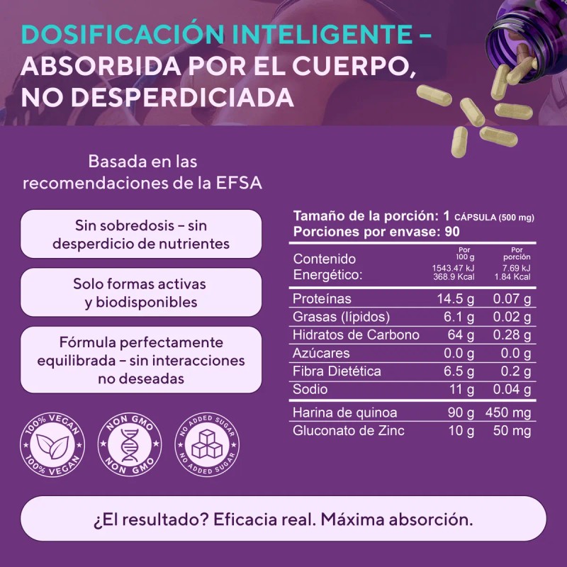 Zinc 50mg Gluconato con Quinoa Cpsulas de Zinc y Magnesio, con Selenio para Apoyo a Inmunidad, Piel, Corazn y Cerebro Suplemento Vegano, Sin OGM...