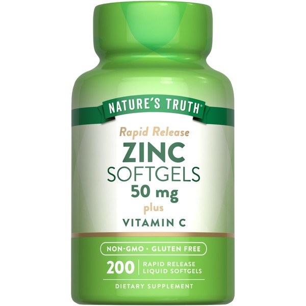 Nature's Truth Zinc 50mg Supplement | with Vitamin C | 200 Liquid Softgels | Non-GMO & Gluten Free