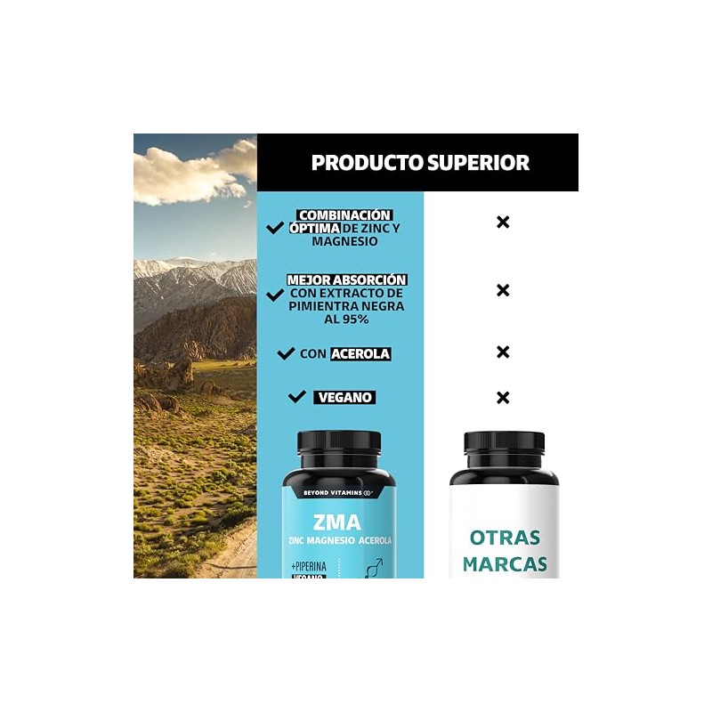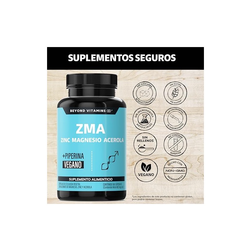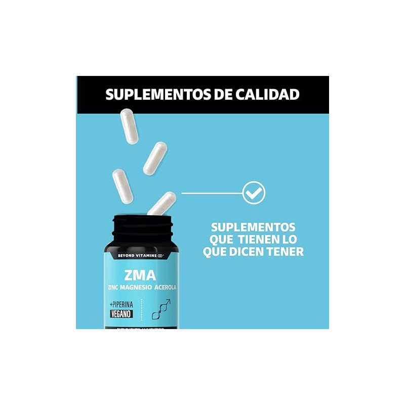Zinc Magnesio Acerola (ZMA) Con Piperina para mxima absorcin Sin Azcar - Suplemento Alimenticio Vegano Beyond Vitamins - Ingredientes NON GMO (180