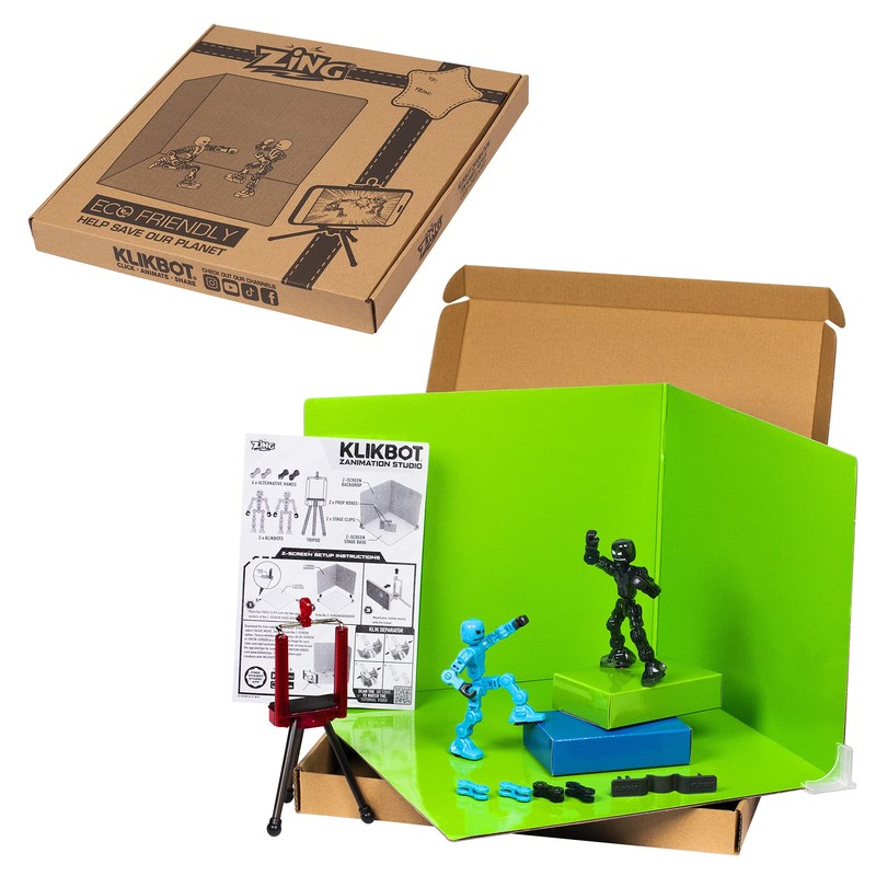 Zing Klikbot Zanimation Studio - Includes 2 Klikbots, Phone Stand/Holder and 2 Sided Backdrop Screen, for Ages 6 and Up