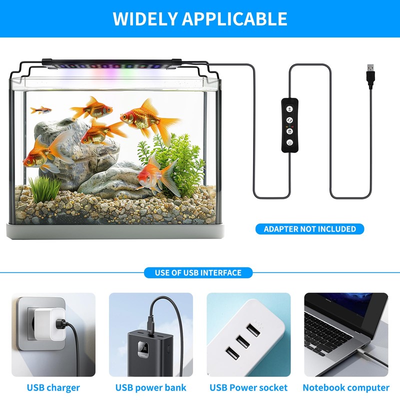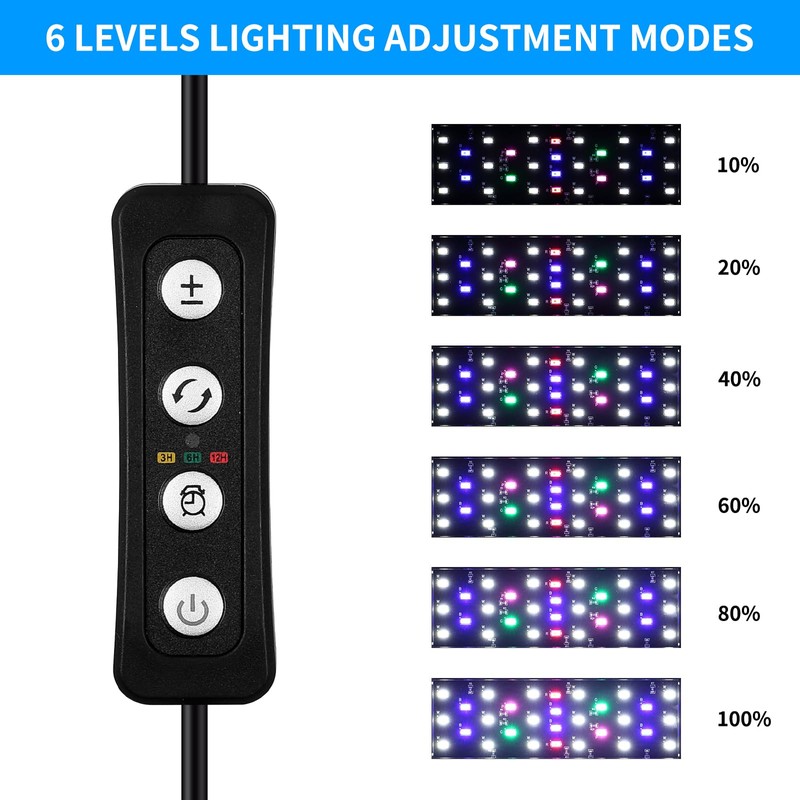 - 【Light Brightness Adjustment】The fish tank lamp can be adjust the brightness of light, 6 levels to choose which can be adjust between 10%-20%-40%-60%-80%-100%. You can customize your fish aquarium brightness freely. Make the best suitable RGB color lights for your coral aquarium fish.