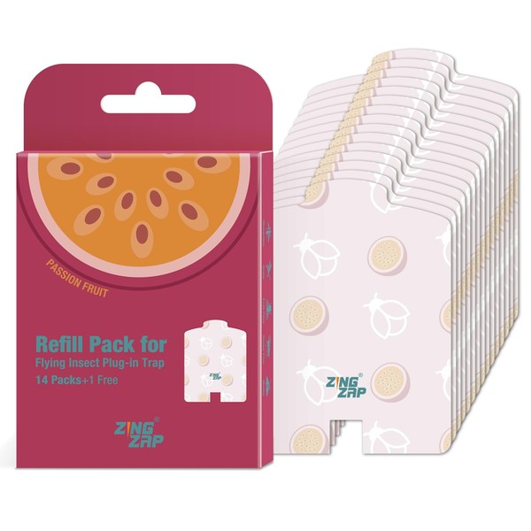 ZingZap Plug-in Flying Insect Trap Card 15 Ct Refill for Plug-in Flying Insect Trap Passion Fruit Scent, Captures House Flies, Fruit Flies, Gnats, Moths, Indoor Fly Catcher