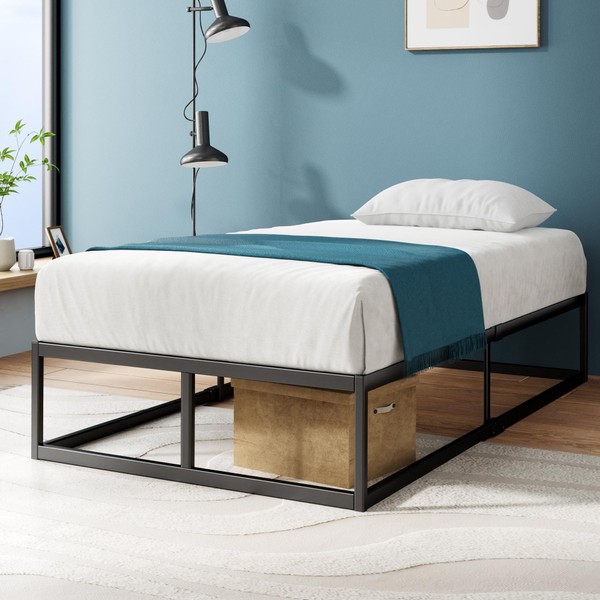 Zinus Joseph 14 Inch Platform Bed Frame, Wood Slat Support, No Box Spring Needed, Eco Friendly WonderBox(TM) Packaging, Easy Assembly, Black, Twin