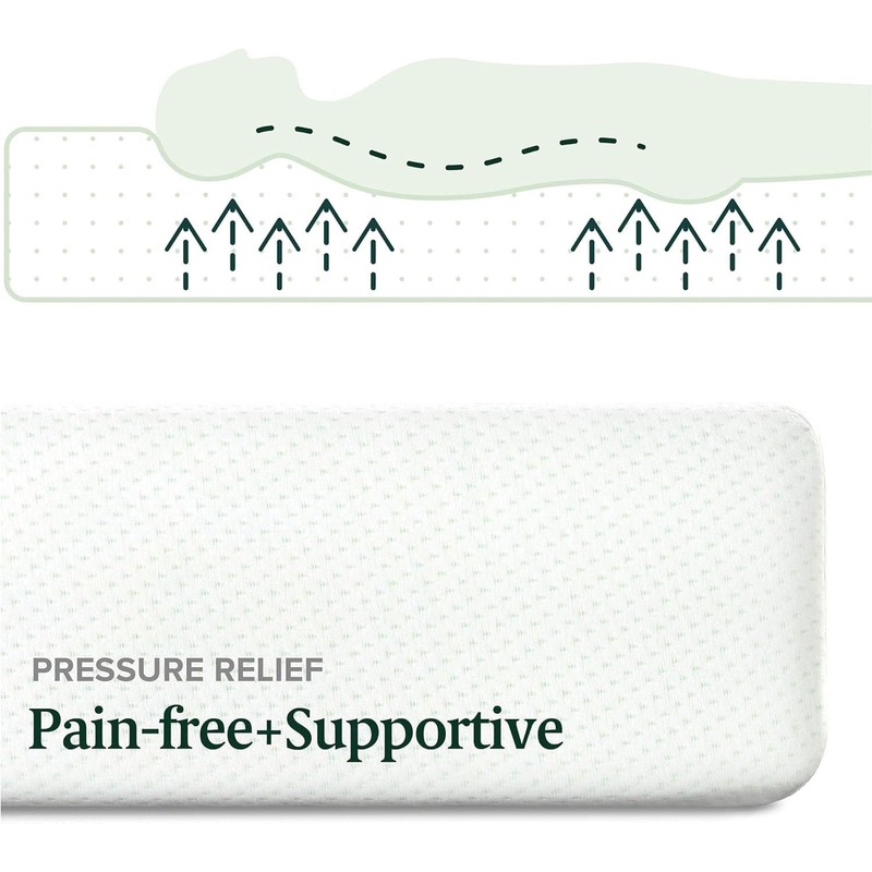 - Mattress layers include: 1 inch memory foam, 1 inch pressure relieving comfort foam, 3 inches high-density base support foam