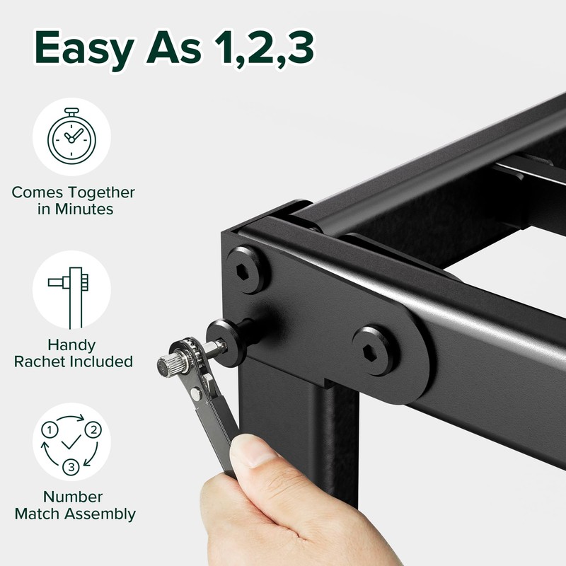 • HEADBOARD COMPATIBLE - This frame is designed to easily attach to your own standard-sized headboard using predrilled holes in two of the legs; headboard not included