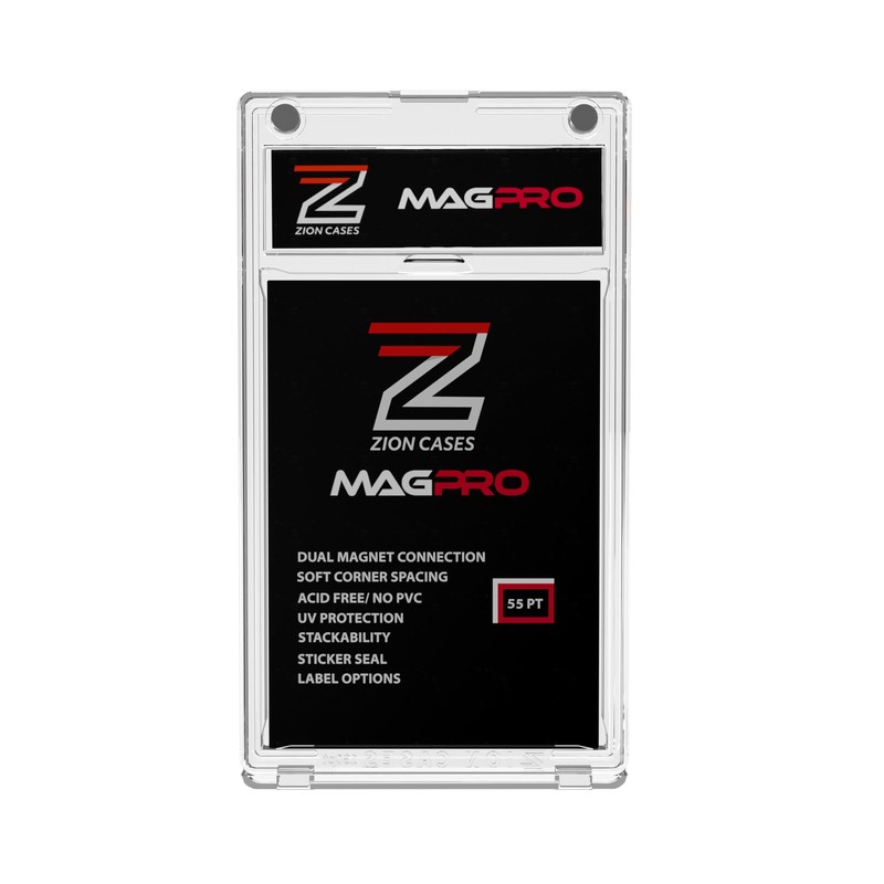 - WE PROTECT THE HOBBIE: Once again, Zion Cases innovates the trading card industry with another superb offering. Introducing MagPro magnetic card holder with a patent pending closure design, embossed edges, built-in corner protectors, easy card removal, and compatible with Zion Cases Slab Case