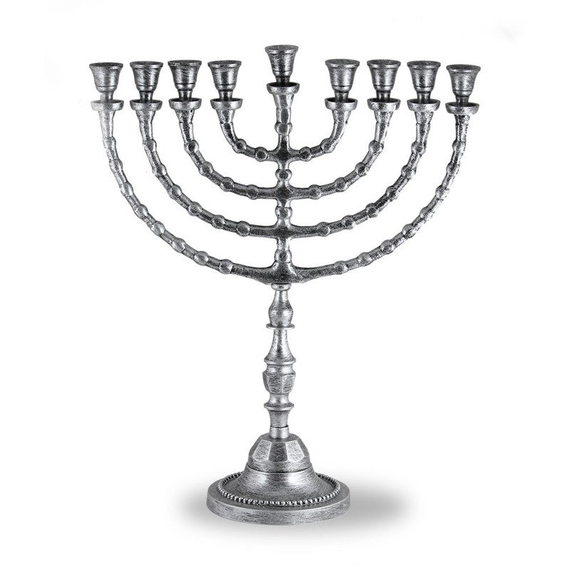 Zion Judaica Large Traditional X-Large Menorah Uses Candles or Oil (Antique Silver) 21" Tall