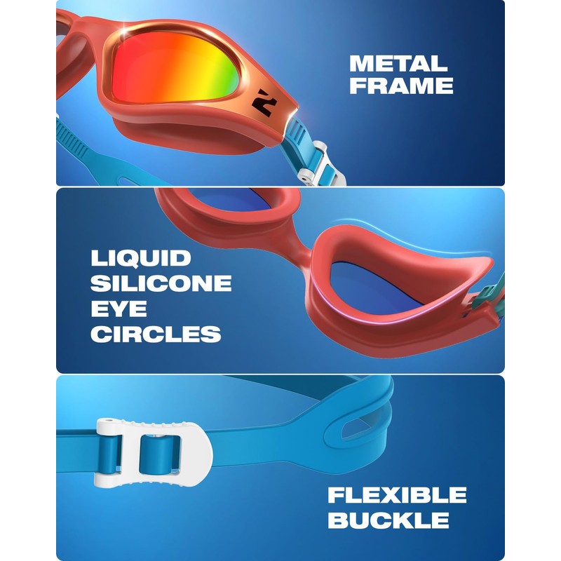 - Premium Design: Durable metal frame, liquid silicone eye circles for a comfortable fit, and a flexible buckle for easy adjustment. Ideal for swimmers seeking both style and functionality!